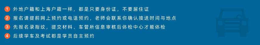 在线报名或电话联系报名,老师会与学员约好接送时间和地点,学员只需携带好身份证和报名费即可(注意无需居住证)