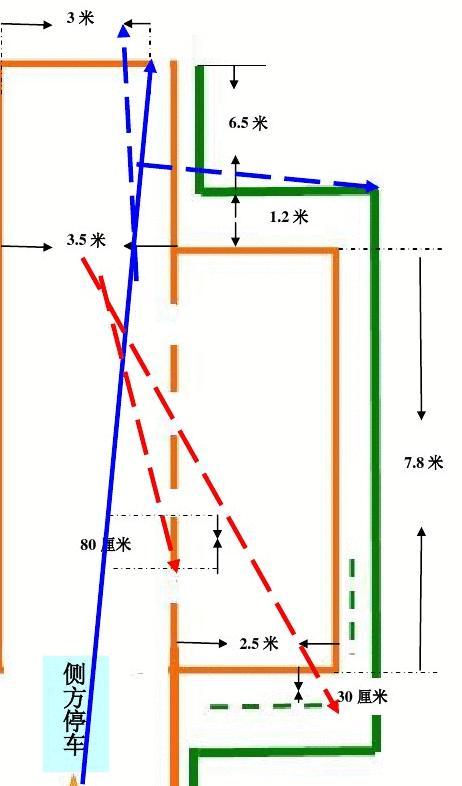 操作方法沿停车位慢速平行前进,当车后窗内出现1号杆时停车;